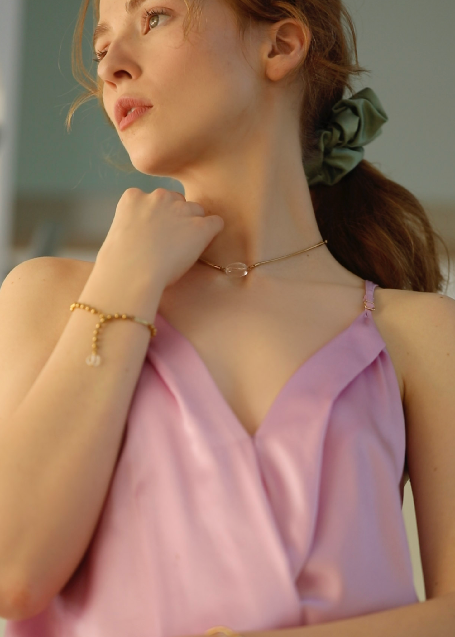 Adjustable snake chain with over-the-head fit features a slider at the back to curate the exact look you are after. A delicate clear quartz connector rests on your chest to remind you growth happens through all experiences in life!